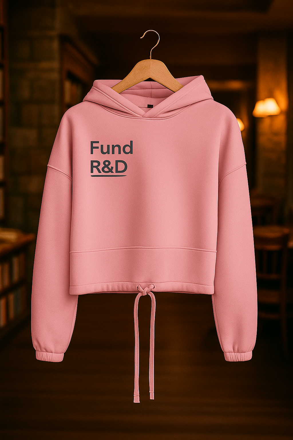 The Women’s Cropped Oversized Hoodie has a relaxed, streetwear‑inspired fit and a subtle mid‑riff cut that makes it playful and modern, while its purpose is serious—every purchase helps fund real research and development projects.